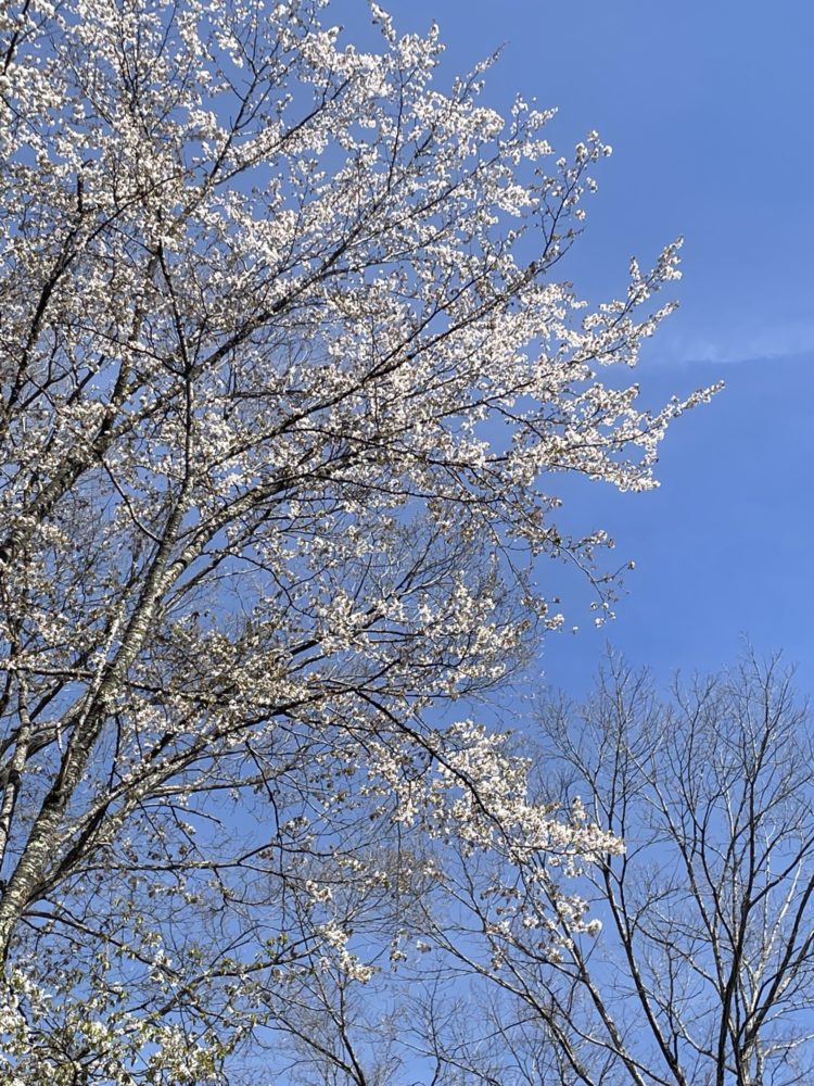 いつも花吹雪になってから開花が気がつく山桜です。見上げるくらいの高いところで咲くのでなかなか気がつきませんが、上を見回してみたら、こんなたくさんの山桜があったなんて…自宅でお花見贅沢な時間をいただきました。